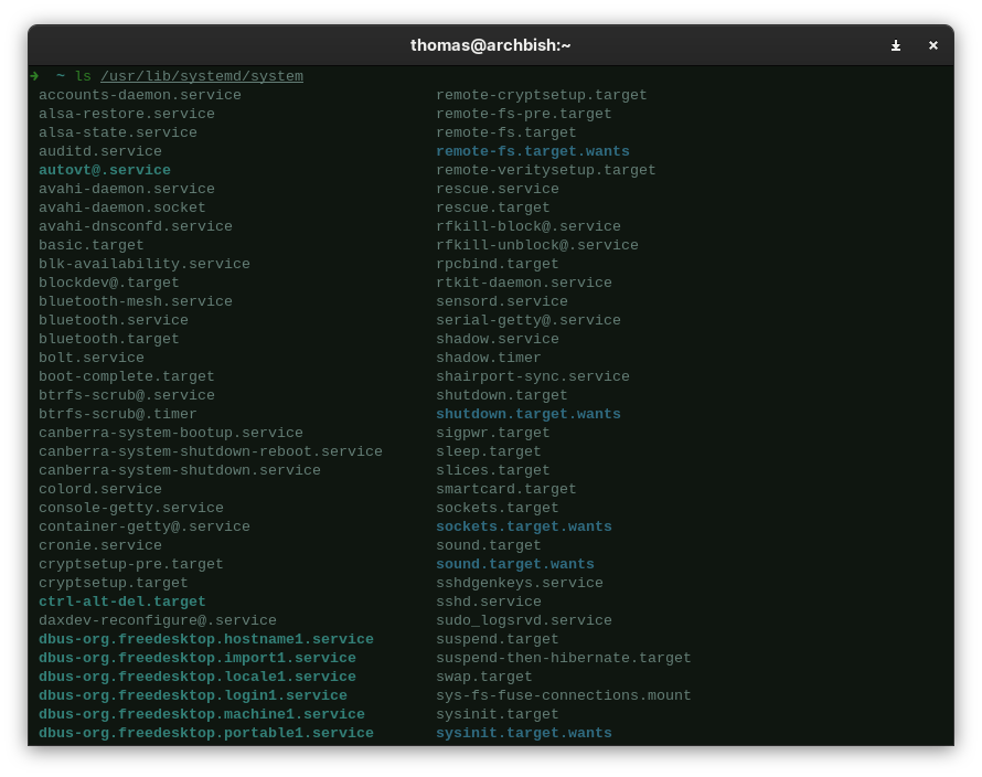 For example, at boot, a target unit called default.target groups together a number of service and mount units as dependencies. These then run in a graph-like dependency structure where a unit that comes late in the boot process can depend on several previous units making earlier branches of a dependency tree join back together.